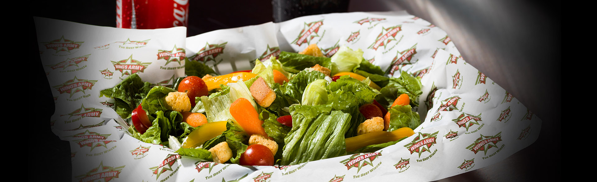 Para la tropa en plan saludable. Mezcla de lechuga fresca, zanahoria baby, tomate cherry, pimiento y crutones.
