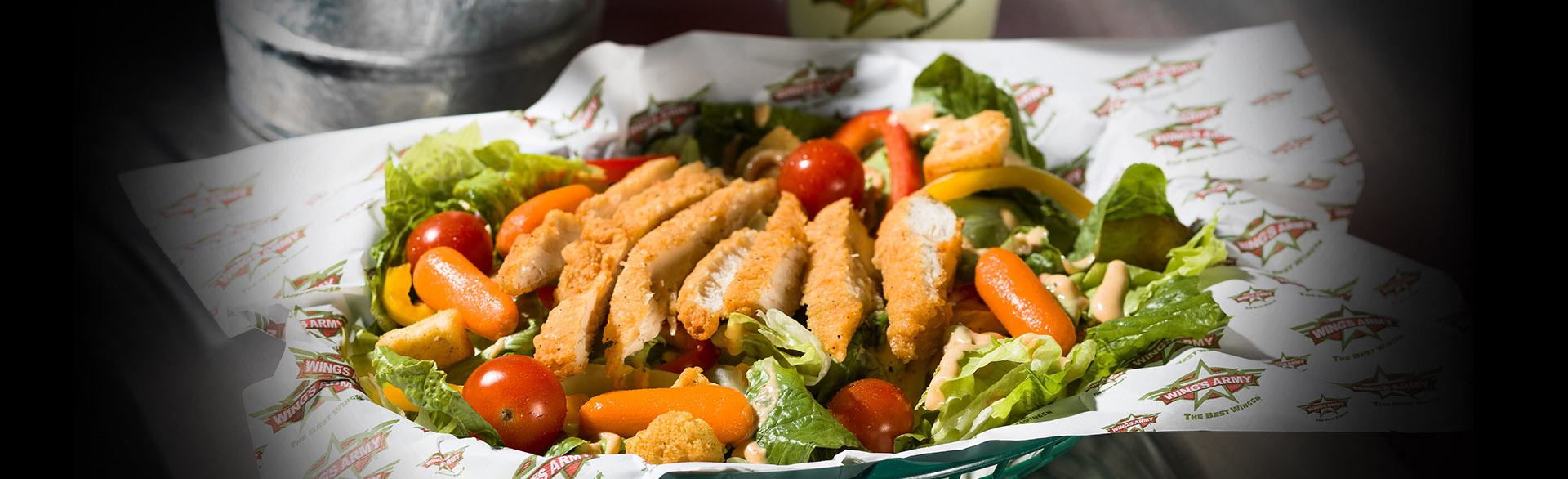 Fresca combinación de jugosa pechuga empanizada, lechuga, pimientos, tomate cherry, zanahoria baby, crutones y aderezo chipotle.