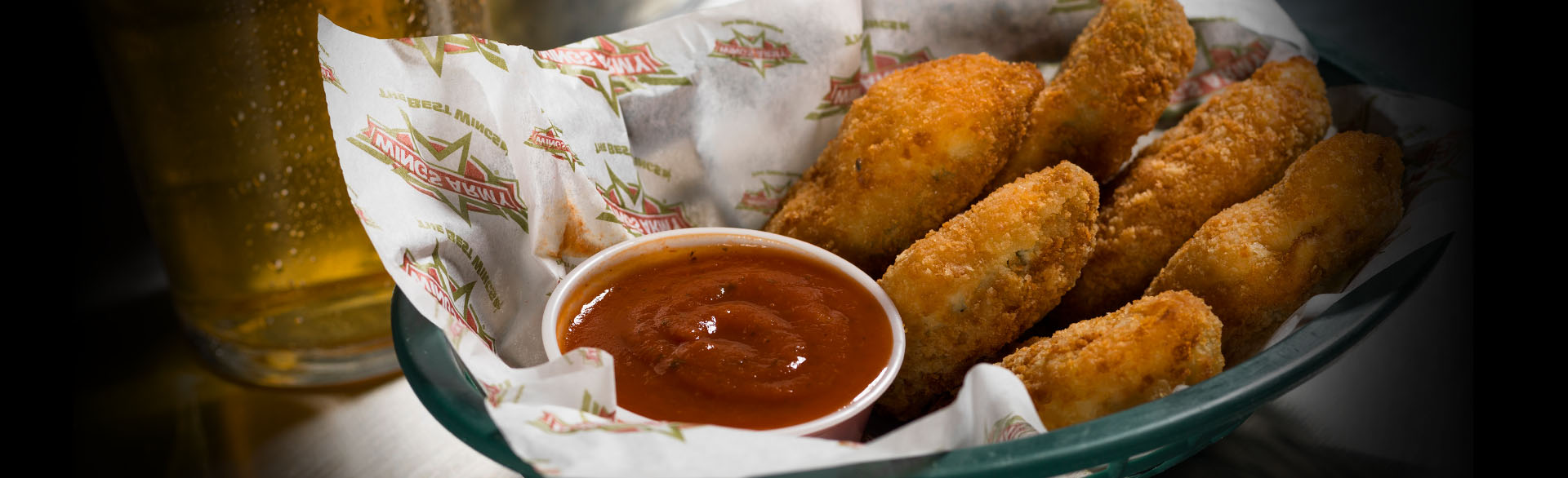 Jalapeños empanizados rellenos de irresistible queso cheddar, listos para bañarse en salsa mozzarella.